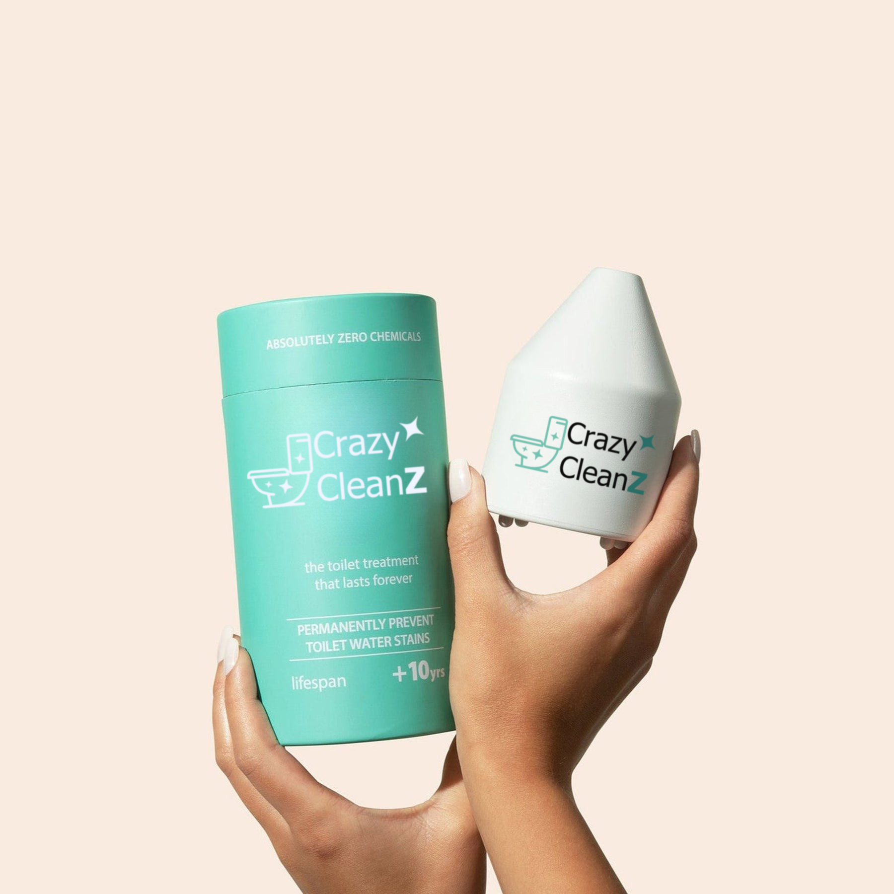Crazy CleanZ’s Hydro-Mineral Magnet Technology deactivates the ability of minerals in water to stain or scale before they enter the tank and bowl keeping it stain and scale-free permanently. Just drop the capsule in the tank of you’re done!